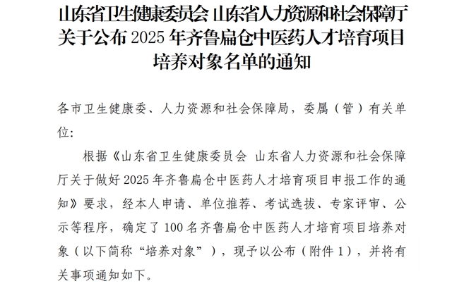 近日,山东省卫生健康委、山东省人力资源和社会保障厅公布了2025年齐鲁扁仓中医药人才培育项目培养对象名单,山东医学高等专科学校教师陈琳、商庆节成功入选。